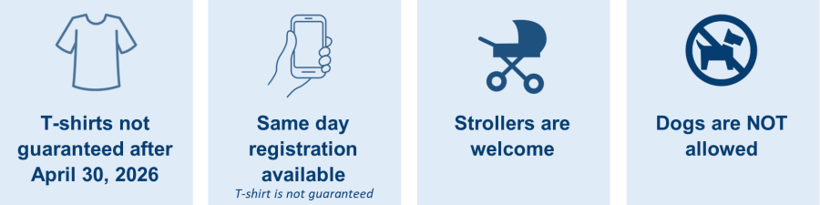 All VIRTUAL race participants must pick up their t-shirts at these times. They will not be available on race day.